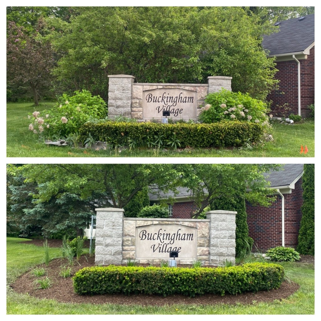 Over the past few weeks there have been some exciting and much needed landscaping updates. Areas along Heydenreich and Bredenbury at 23 mile were cleared out, cleaned up, and new plants were put in. The trees along Heydenreich were all trimmed, cleaned up, and mulched. On tap for Spring 2023 is the berm area at Vesper/Heydenreich, some additional plants on the berms at Kinlet/Heydenreich and Vesper/Heydenreich, and around the new signs on 23 mile road – which will be landscaped to match the other signs following the completion of the road expansion. There are also a few dead trees on the west side of Heydenreich that will be replaced either Fall 2022 or Spring 2023. Below you will find some before and after pictures as well as an after picture of the area on Bredenbury. We hope these updates have helped to brighten up our neighborhood!